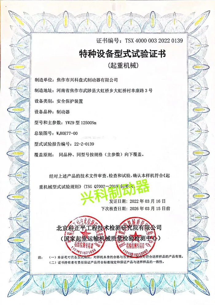 特種設備型式試驗證書
